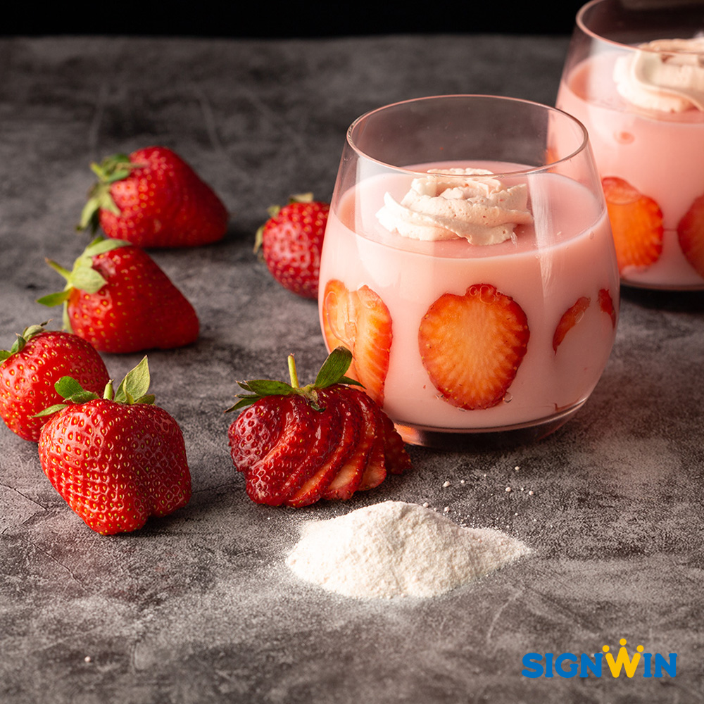 Selected nature ingredients and no preservative. Special mixing ratio which makes a smooth texture strawberry pudding. Only 3steps to make the product and business pack is available for restaurants, catering.