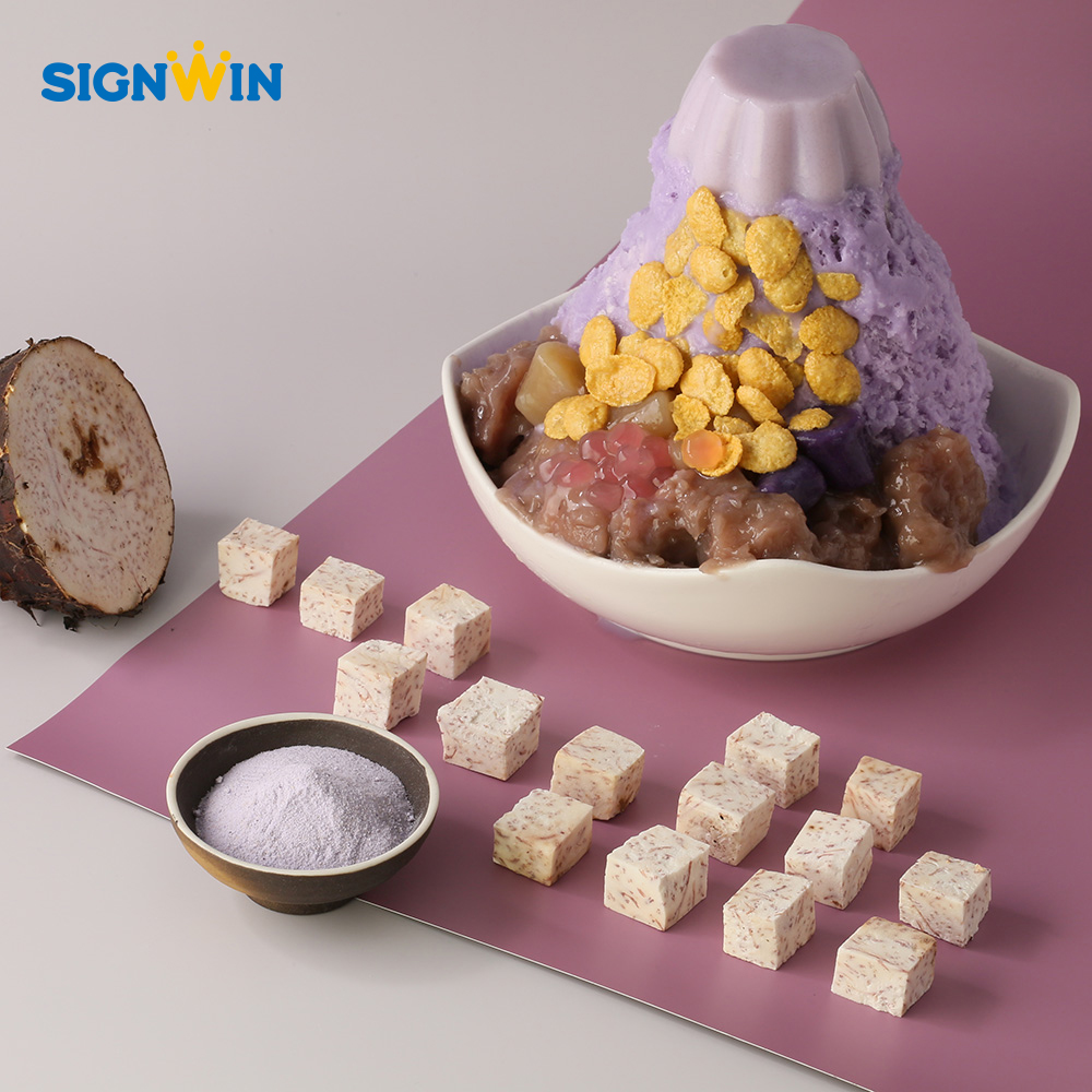 Selected nature ingredients and no preservative. Special mixing ratio which makes a smooth texture taro pudding. Only 3steps to make the product and business pack is available for restaurants, catering.