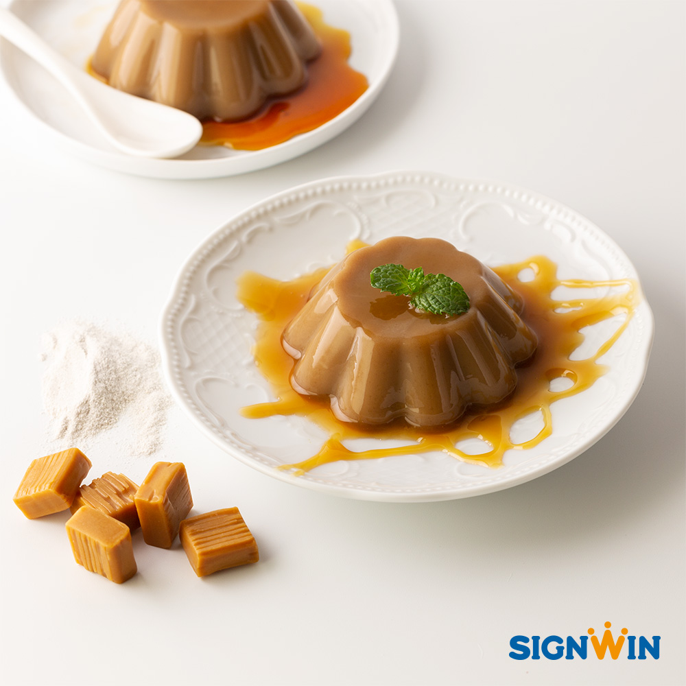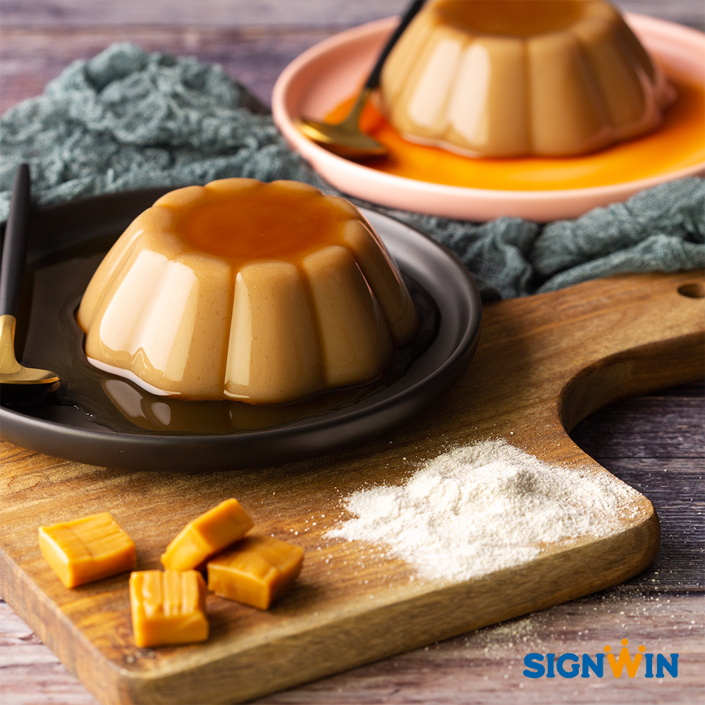 Selected nature ingredients and no preservative. Special mixing ratio which makes a smooth texture caramel pudding. Only 3steps to make the product and business pack is available for restaurants, catering.