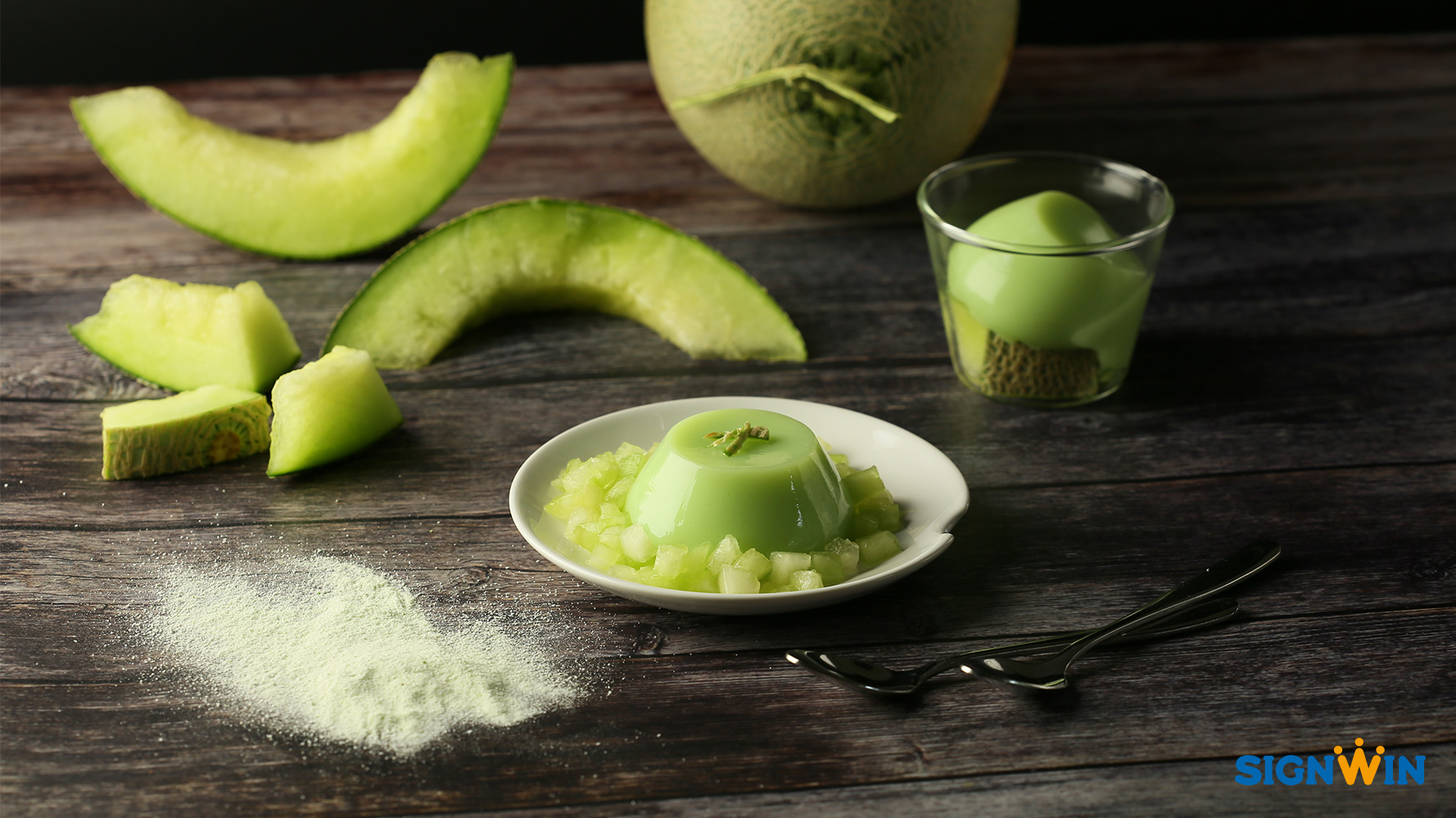 Selected nature ingredients and no preservative. Special mixing ratio which makes a smooth texture honeydew pudding. Only 3steps to make the product and business pack is available for restaurants, catering.